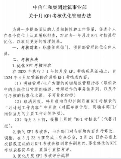 在正月十五前連續4天的“新春工作懇談會”成果基礎上,事業部針對過往的績效管理方式弊端和不足,認真梳理了主要矛盾問題,立足于企業管理生態優化和人員積極性提升,瞄準績效激勵機制的難點和痛點,推出了“兩考核一激勵”機制實施方案。一是優化全員月度KPI考核,進行考核內容和考評程序的精簡調整,避免考核指標寬泛、評分流程繁瑣。二是改革管理崗位年度目標責任制考核,按市場標準重新評估管理崗位薪酬標準,將既往的年度激勵隱形收入標準直接充實到崗位薪資的顯性標準中,將年度績效管理目標任務指標按百分制分解考核,直接與管理人員的薪酬標準掛鉤,讓管理團隊從以往個人收入的“月發標準低、年度總收入無感覺”,調整到“月發薪酬有感、年度考核有標”。同時建立上下級之間、平行團隊同事之間的“員工綜合表現雙向評價機制”,每半年評價一次,作為員工薪資調升調降的直接依據。三是建立項目經營成本管理“責任合伙承包制”,分項目進行經營管理激勵,讓項目部人員、公司職能管理服務人員都能從項目經營中享受激勵成果。