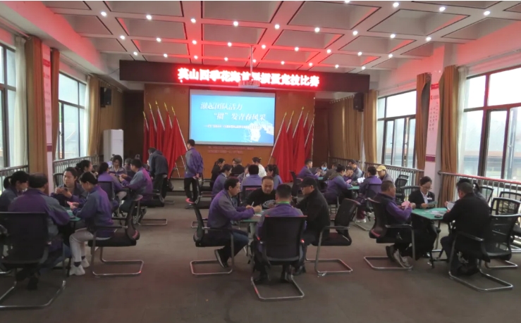 四季花海公司工會主席鄒利主持賽事活動,公司副總黃鵬擔任裁判長。四季花海公司40多個團員青年和摜牌(摜蛋)活動愛好者在銘先廳會議室參加了此次賽事活動。