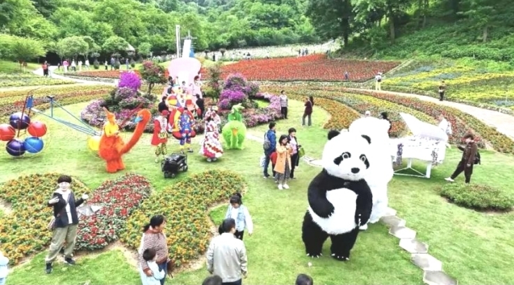英山四季花海景區,滿山繁花,滿園春意,花海棧道上游人如織。漫山遍野盛開的花兒,還有看花的人,都構成了一道道流動的風景線。花千谷、花立方、瞭望臺、月季園等作為最佳觀賞點位十分熱鬧,游客們紛紛駐足欣賞,紛紛與家人朋友合影留念。莫奈花園、花車巡游、文藝演出、劉細爹說媒,除了正值顏值巔峰期的絕美風光,本次五一景區開展的主題活動,也深得游客的喜愛。