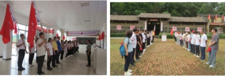 7月11日,中國紅十字會駐英山縣方家咀鄉四棵楓村第一書記王璐璐帶領四棵楓村黨員到長征精神體驗園開展黨建活動,現場為老黨員頒發“光榮在黨50年”紀念章。7月27日,武漢市市政工程機械化施工公司全體黨員干部、新發展黨員,在大別山革命歷史文化陳列館前整齊列隊,面對鮮紅的黨旗,莊嚴地高舉右手,鏗鏘有力地重溫入黨誓詞,將共產黨員的初心、使命和擔當牢牢銘記在心中。