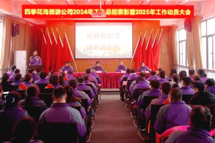 四季花海公司是春節不打烊的業務主體。剛忙完春節假期旺季接待,大年初八就召開了股東會四屆三次會議,對公司年度經營發展工作進行研究決策。2月15日,花海旅游公司召開2024年工作總結暨2025年工作部署大會,表彰年度先進單位和個人,經理層進行年度述職,集中完成了中層管理職位競聘和崗位績效管理責任書簽訂。會議分析了在會上經濟形勢,肯定了全體員工所作出的成績,指出了工作的不足,展望了 2025 年市場發展趨勢。董事長杜勇在會上強調了 2025 年公司工作創新和改革的重點,要求大家要做到“三個一心”“一個堅決”,即全員一心抓營銷,團結一心干工作,真誠一心搞服務,堅決凈化管理生態系統。希望全體員工提振精神、團結奮進,恪守職責、勇于擔當,廉潔自律、苦干實干,愛崗敬業、創新工作,圓滿完成各項工作任務,以更加堅定的信念、更加飽滿的熱情投入到新一年的工作中,謀求新發展、實現新突破,共同譜寫公司發展新篇章。